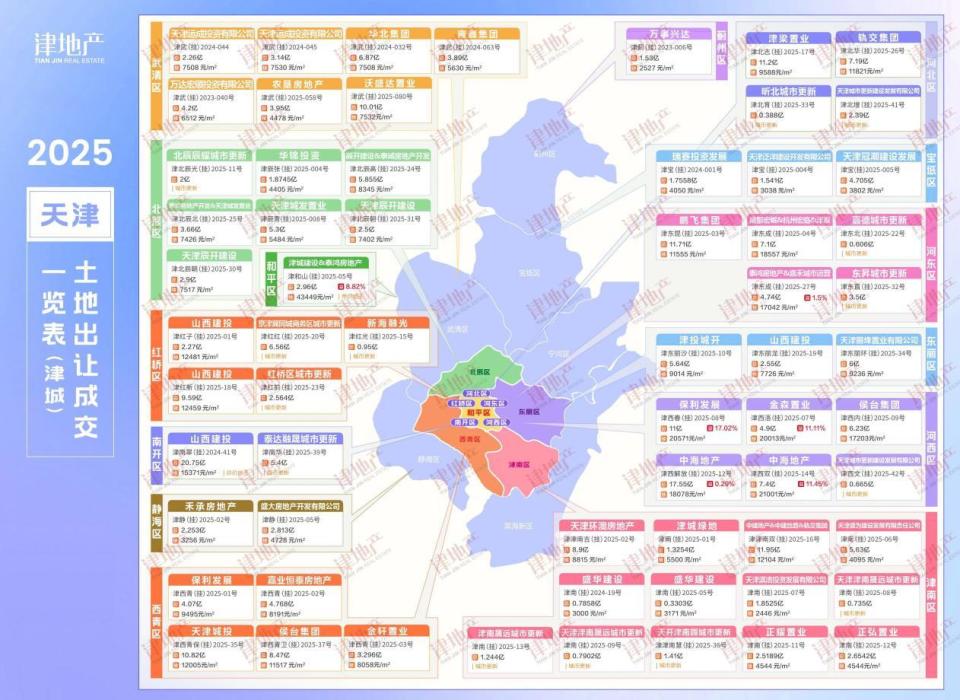 凤凰网数据显示,天津市全年共成交77宗宅地(其中市内六区23宗,环四28宗,远郊13宗,滨海新区13宗),总成交土地面积约343.79万方(2024年约256.58万方),上涨约33.99%;成交总价约359.39亿元(2024年约286.38亿元),上涨约25.49%。