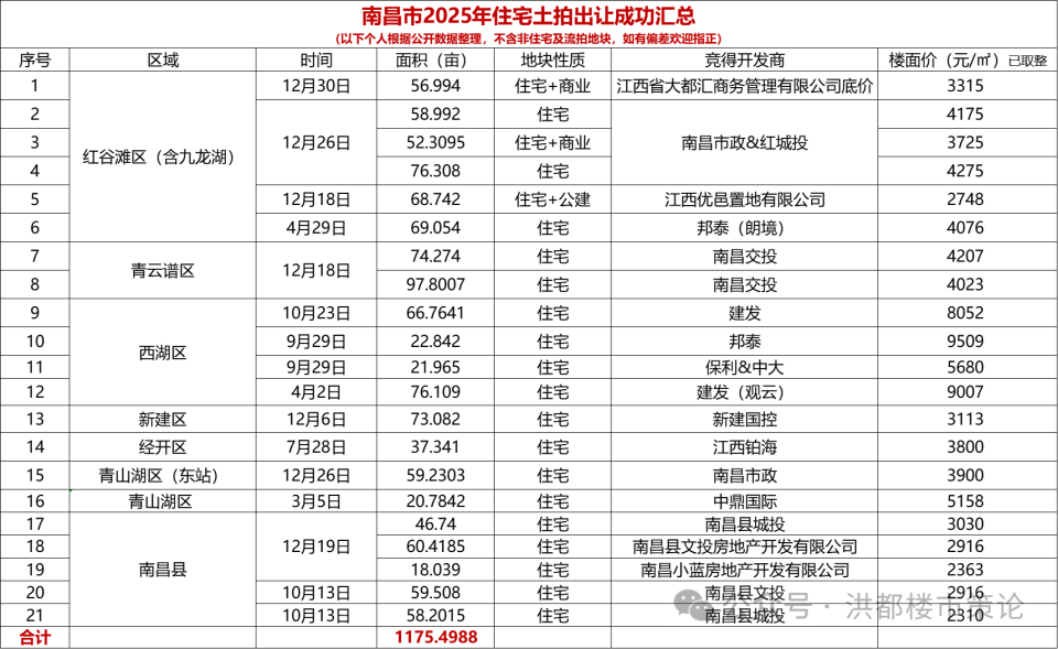 2025年南昌市成功出让土地21宗,其中南昌市本级成交16宗,全年成交总额约62.43亿元。