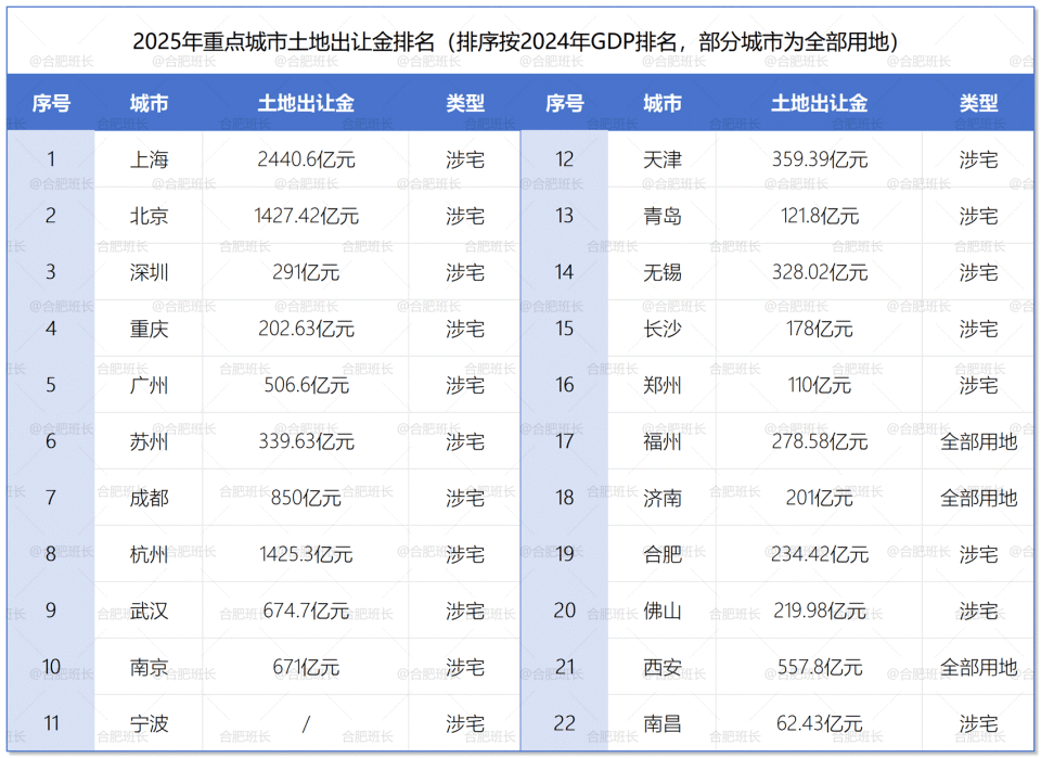 今天班长整理了2024年22个重点城市的2025年土拍成绩单,供大家参考研判。