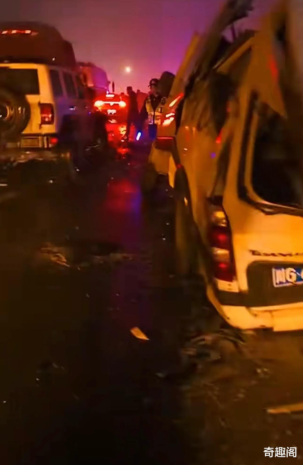 根据一位目击者的说法,疑似是前车突然急刹车,导致后方车辆避让不及,发生了追尾和碰撞。根据现场曝光的画面来看,地面洒落着很多碎片,有的车辆已经变形,另外还有急救车辆和消防车辆。