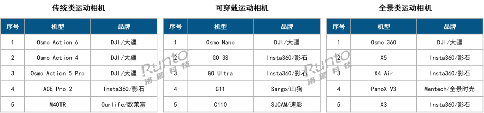 Insta360影石凭借“隐形自拍杆”、“子弹时间”等创新功能,精准切入社交分享场景;在全景类运动相机市场的表现亦较为突出。