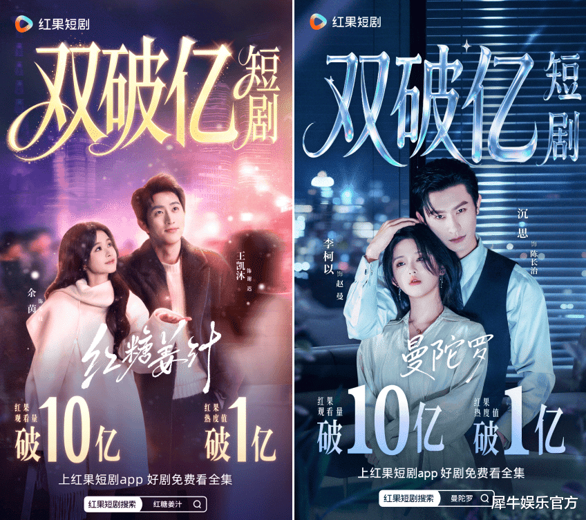 间隔一天在红果上线的这两部短剧开播后均迅速以破亿热度值登顶红果热播榜、并在五天之内达成播放量破10亿成就,还持续霸榜云合全网微剧有效播放TOP2。