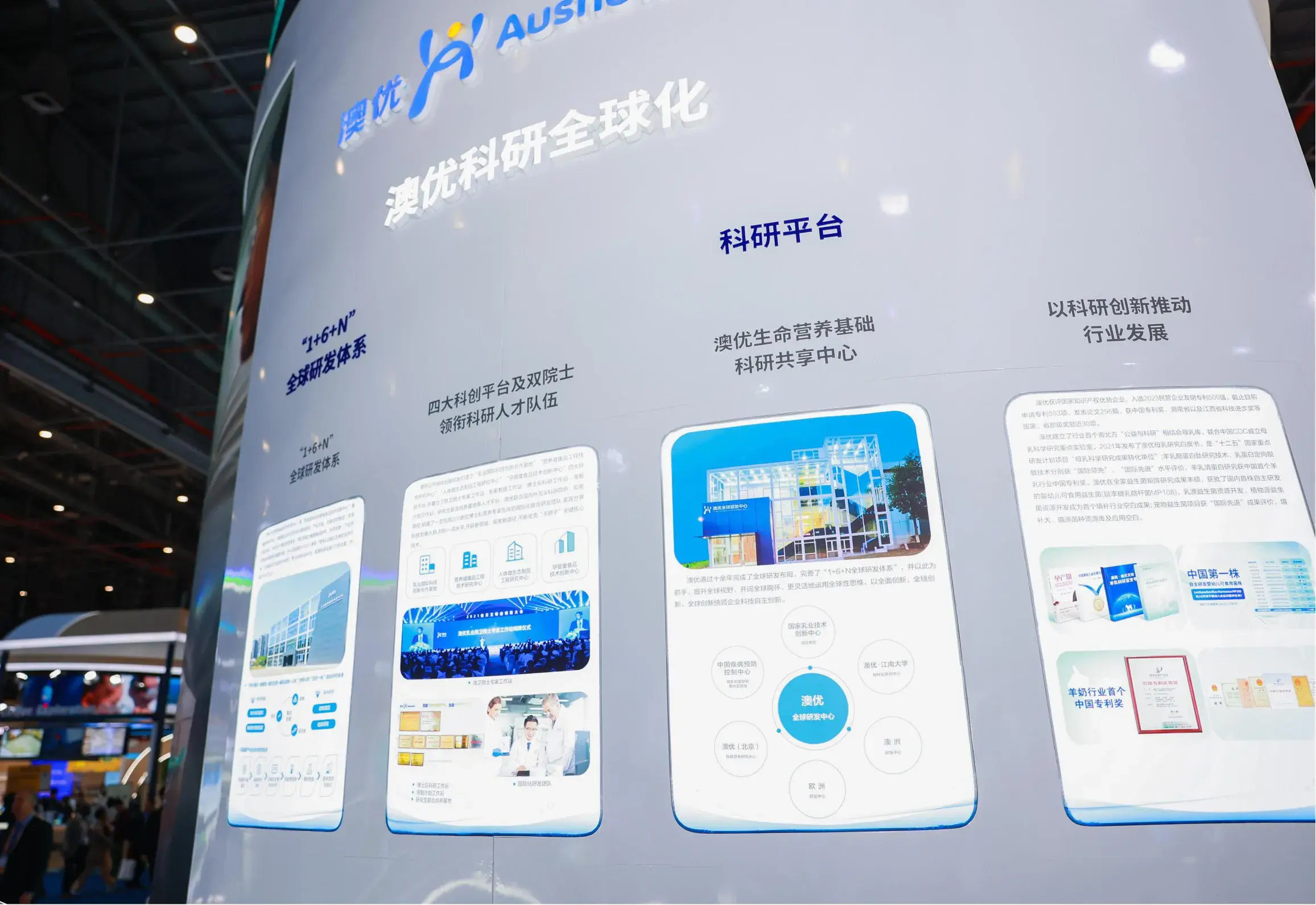 △第七届进博会上,澳优展位介绍澳优科研全球化