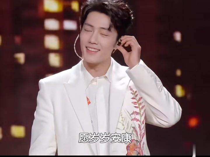当晚的肖战身着绣有虞美人与薰衣草的白色西装,一开口就把新春氛围感和个人魅力拉满。主歌气声轻柔似耳语,副歌A4高音稳到极致,全开麦真声无修音,自带岁月静好的治愈感。最绝的是观众的“突袭”大合唱,副歌“愿岁岁安康”一响,全场齐唱瞬间刷屏,肖战立刻摘掉耳返清唱回应,还把话筒对准观众席,害羞浅笑比赞,双向奔赴的默契甜到齁。