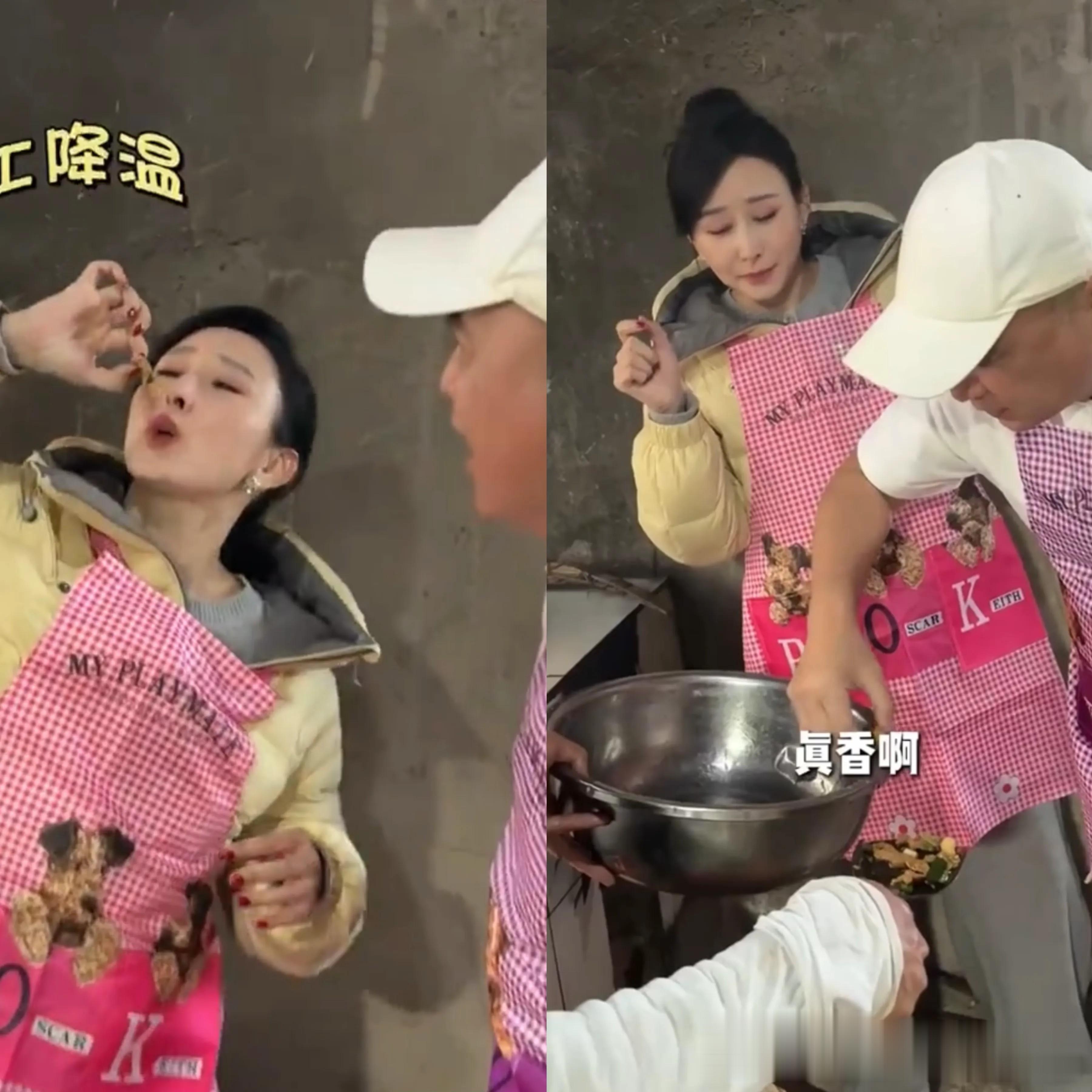 在厨房里一直跟在胡静身后的朱兆祥,也会学着胡静用手去试试味道,超接地气。