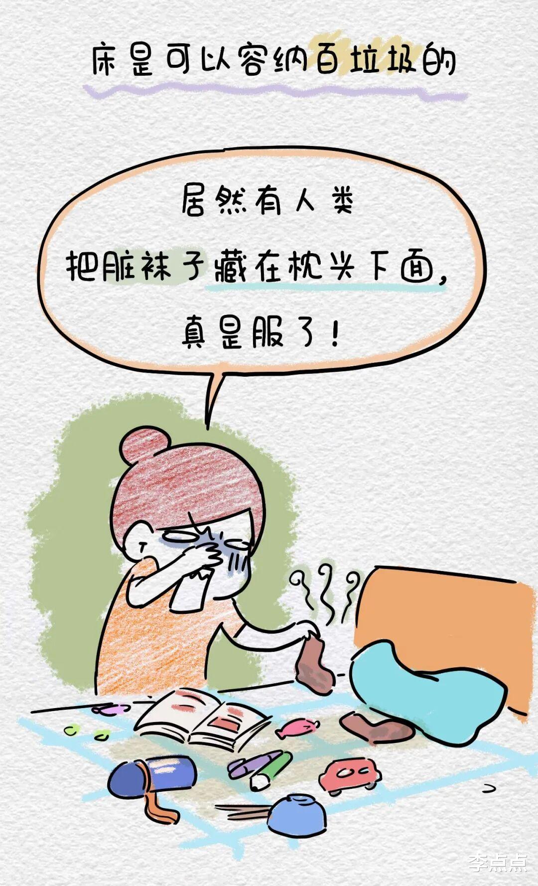 土豆的床上,真的有叉子、筷子、碗,我自己都不敢看他的房间,什么破烂都能在里面看到,就像垃圾场一样,洁癖土豆爸去一次疯一次。