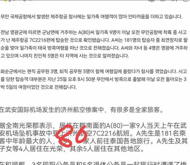 飞机上一共有181人。机场公布的遇难者名单密密麻麻,整整四页纸,每一个名字都承载着亲人的爱与希望。最年长的是80岁的老人,最小的只有3岁。幸存者中仅剩2人,他们是乘务员。不幸中的一点光亮,依旧无法照亮满是眼泪的现场。