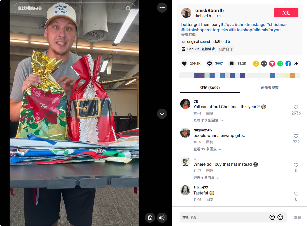 QVC环保圣诞礼品袋就是一个典范:在传统的、繁琐的单张包装纸和昂贵的豪华礼盒之间,它用“50个装”的省心环保方案,精准填补了市场空白,创造了174.05万美元的GMV。
