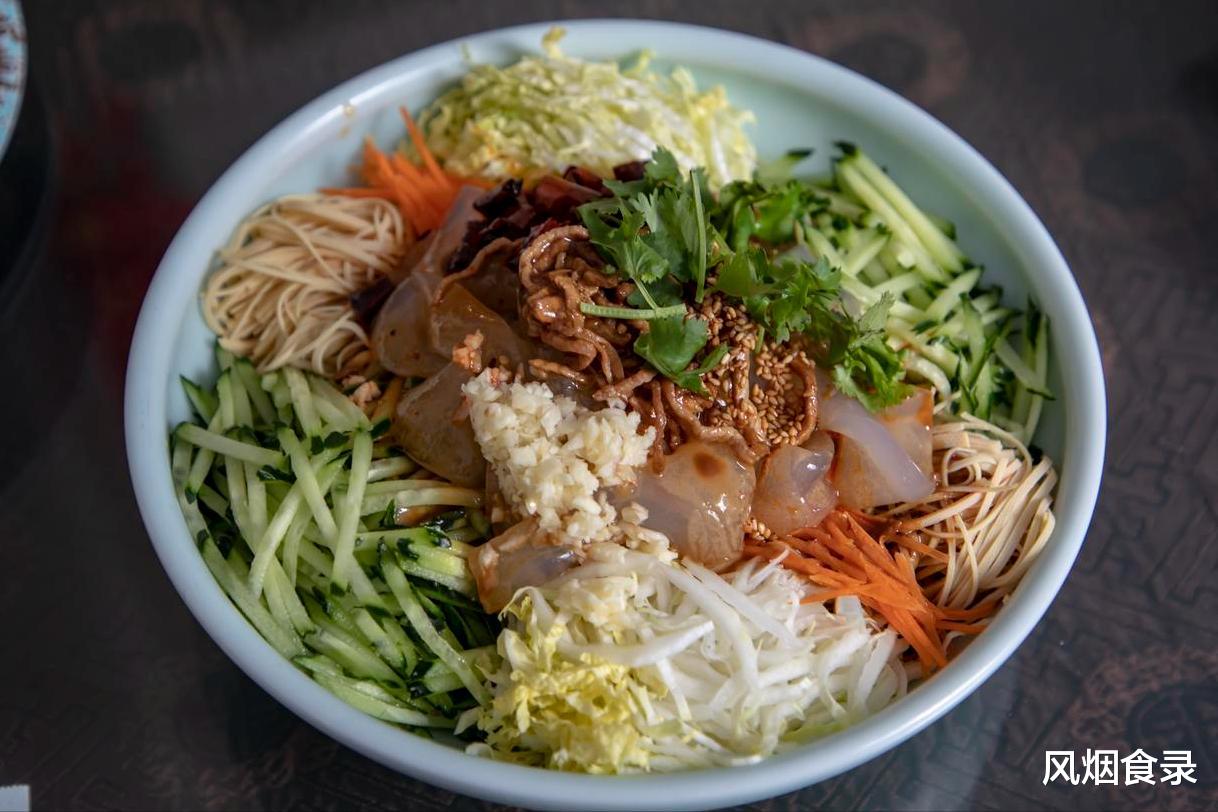 荞麦面混小麦面,冰镇汤里泡着梨片黄瓜丝,夏天来一碗透心凉,