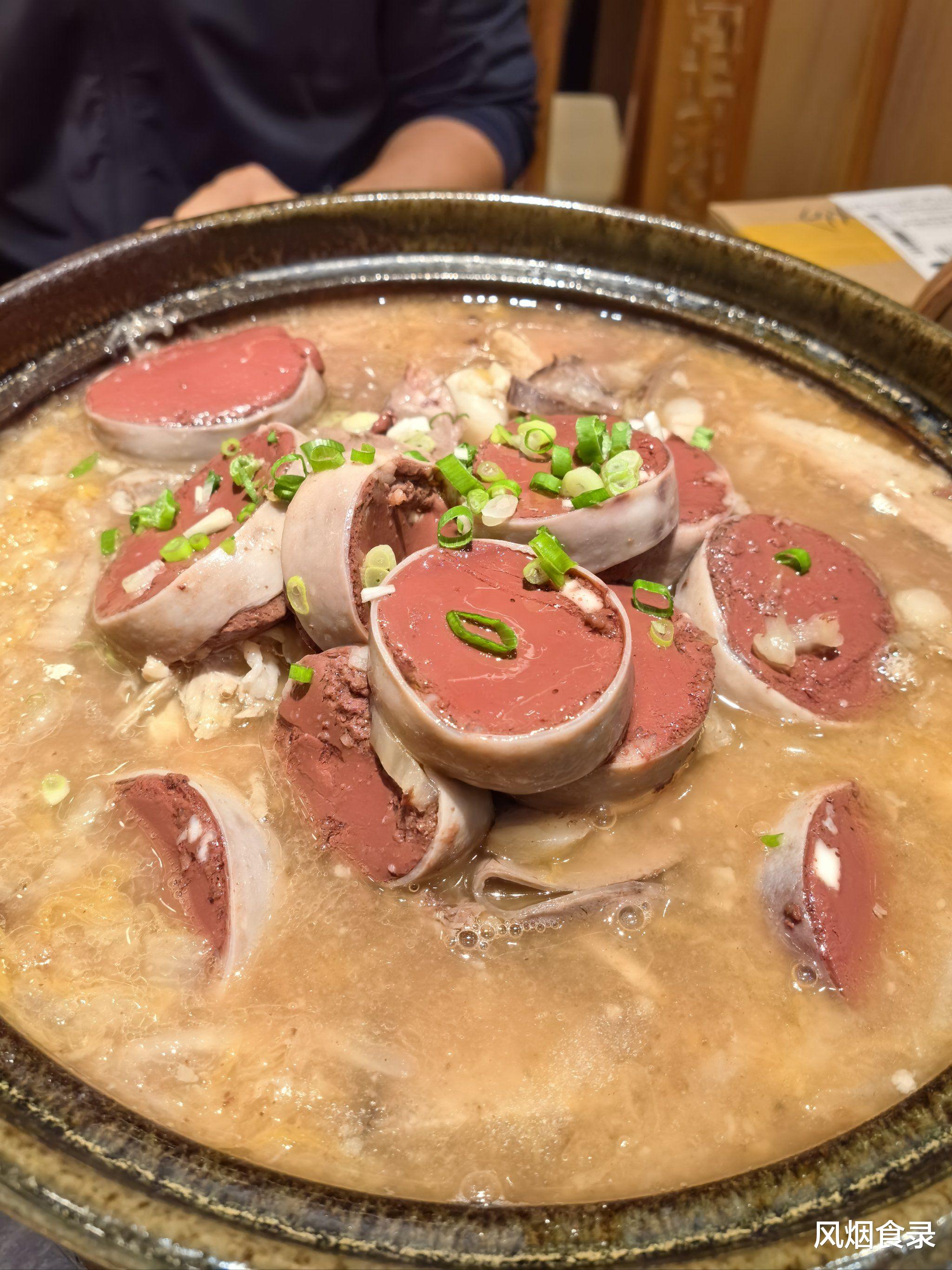 白肉血肠源自满族萨满祭祀,猪五花经明火烤皮、慢煮切片,血肠灌入肠衣汆熟,与酸菜共炖,肥而不腻、脆嫩鲜香,