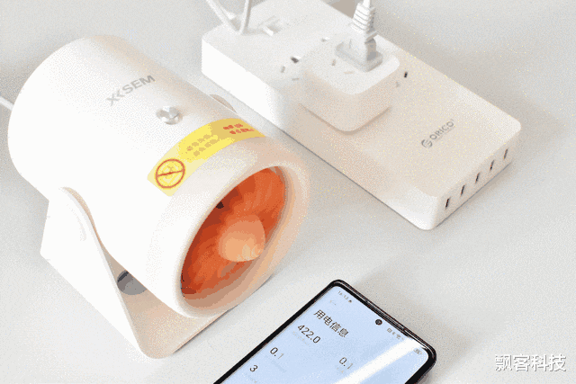 之前提到开空调费电,所以特意测试了一下西圣Warm Mini暖风机的使用功率,标称额定电压220V,额定功率480W。实测一档422W、二档523W,通过创新技术架构实现全链路能效优化,让小功率也能带来大热感。