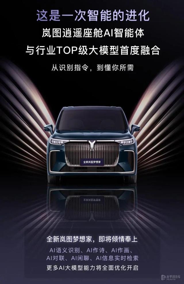 2月7日,岚图汽车官方宣布,已完成和DeepSeek模型的深度融合,岚图知音和岚图梦想家将首搭岚图逍遥座舱AI智能体,此外岚图知音将成为汽车行业首个融合DeepSeek的量产车型。