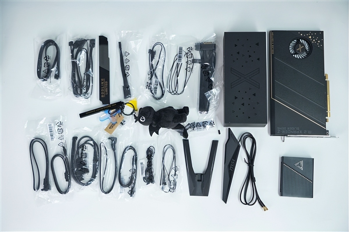 这款限量版主板采用超神十周年专属设计:每一款都刻有限量数字标识,M.2扩展卡、EZ控制集成器都新增十周年金色涂装,并附赠黑色小红龙钥匙扣。