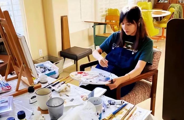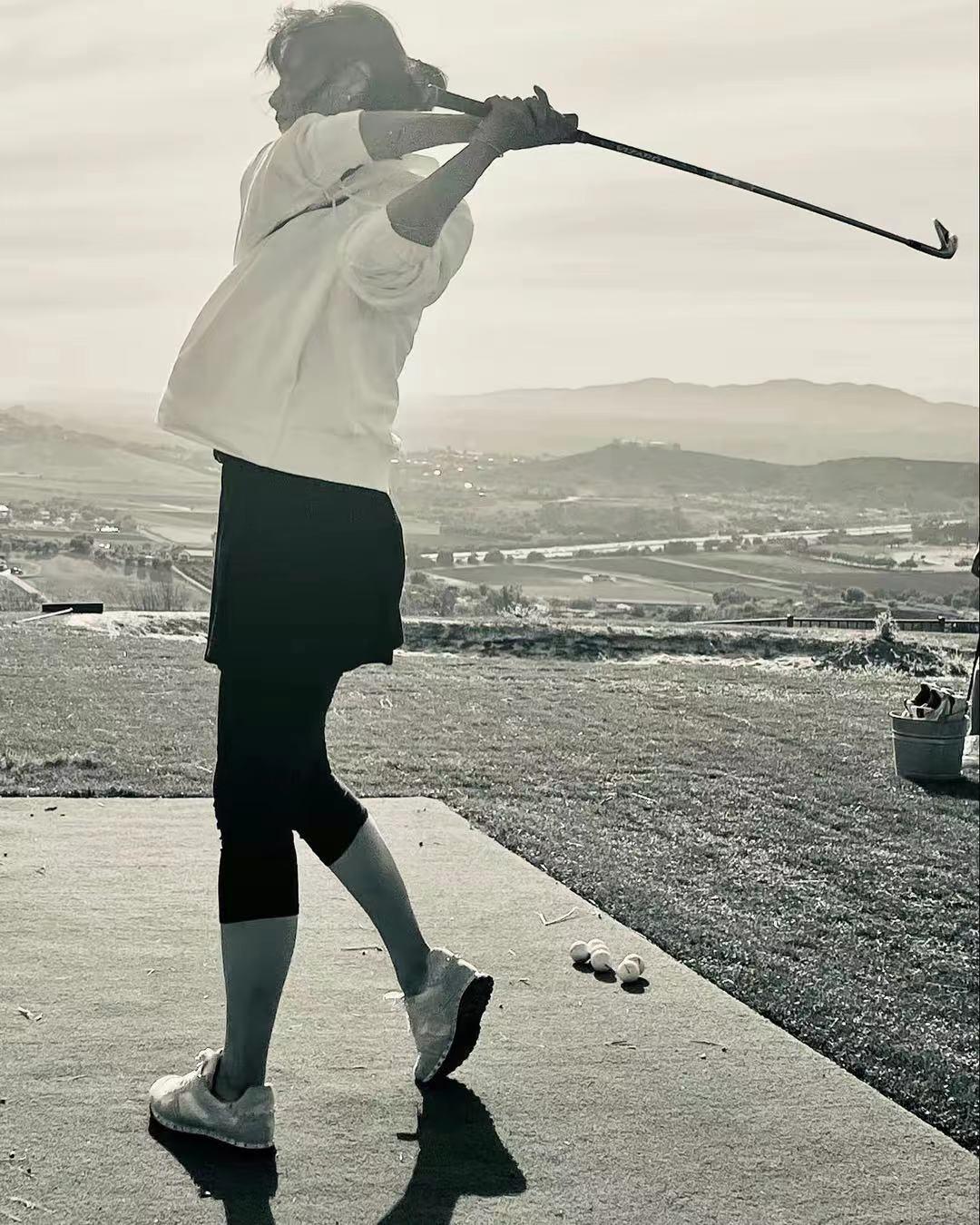 平日里,她偶尔会分享自己的近照,不是打高尔夫球,便是练习毛笔字,画油画,还会带着家人四处游玩,看得出来她在国外过得十分惬意。