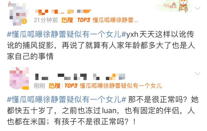 对此,不少网友支持工作室的澄清,认为八卦媒体爆料的内容没有实质证据,只是捕风捉影,并且徐静蕾已经49岁,即便真的怀孕生女也很正常。