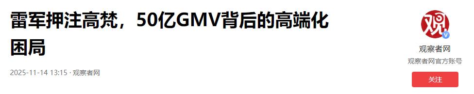 2025年11月初,高梵完成新一轮融资,投资方是雷军旗下的顺为资本。