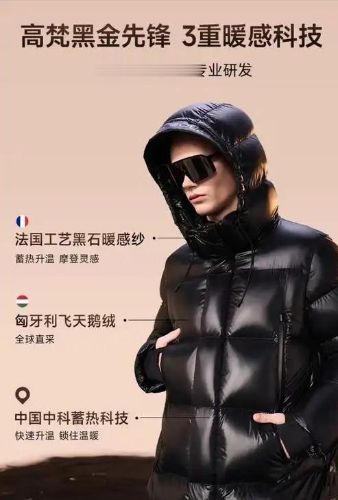 他推出的黑金鹅绒服,用飞天鹅绒填充,缝线用的是英国高士牌,针则来自德国蓝狮集团,还把研发占比提高到6%到8%,远超行业1%的平均水平,甚至像手机品牌一样标注出“蓬松度高50%、保暖强30%”的技术参数。
