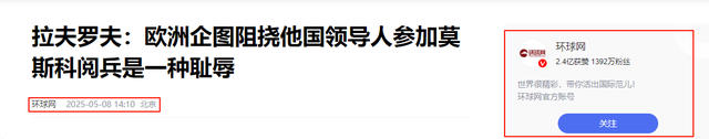 4.原文登载于环球网2025年05月08日关于“拉夫罗夫:欧洲企图阻挠他国领导人参加莫斯科阅兵是一种耻辱”的报道