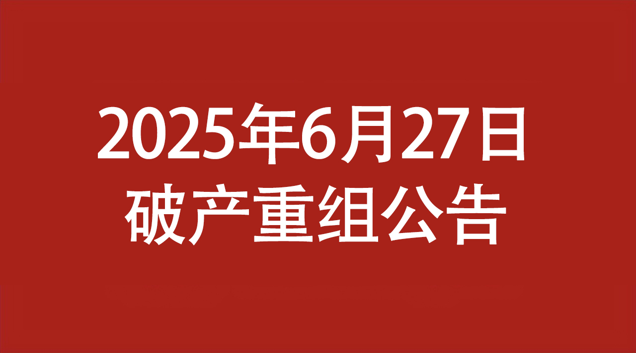 根据人民法院公告网显示,2025年6月27日,全国共有1家房地产相关企业申请破产、被终止破产或破产重组。