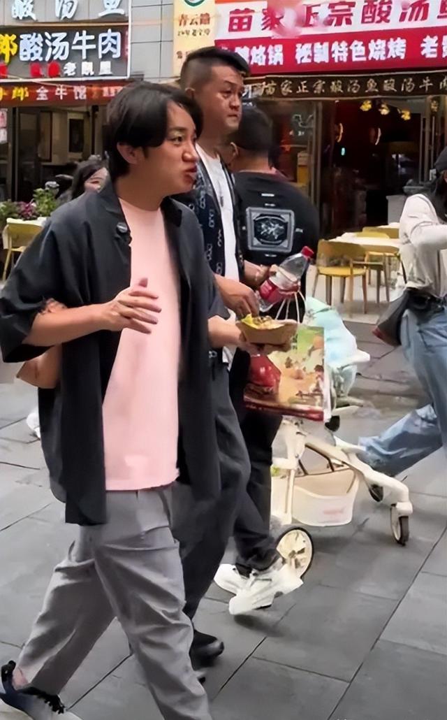王祖蓝表现得非常接地气,完全没有明星架子,他手里拿着食物。