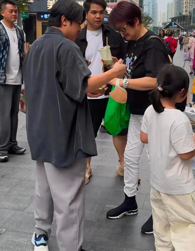 这个超过十公分的身高差异显得格外醒目,吸引了不少路人的目光。