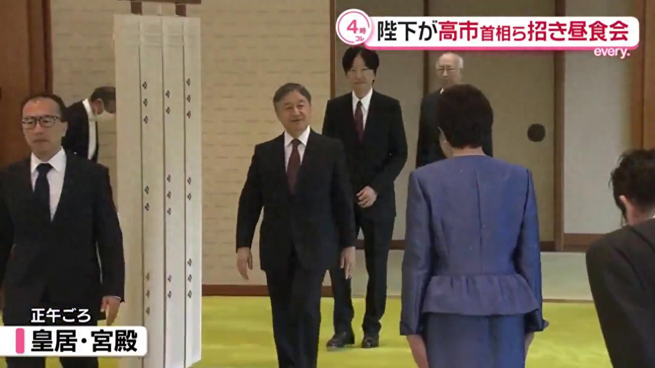 陛下,力高市首相5招昼食会。正午二3。皇居·宫殿。陛下,高市内阁発足后,首相·阁僚5 出席初。