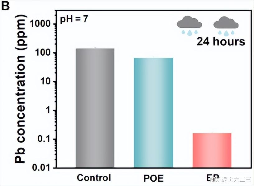 模拟连续暴雨 24 小时:EP 封装的电池,铅泄漏量只有 0.16ppm,铅截留效率 99.89%;而 POE 封装的电池泄漏量是 65.56ppm,未封装的更是高达 140.25ppm。