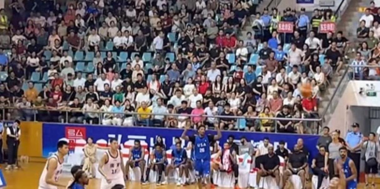 在广东江门恩平举行的一场中外男子职业篮球挑战赛上,广东全运男篮以74比79输给了美国战鹰队。