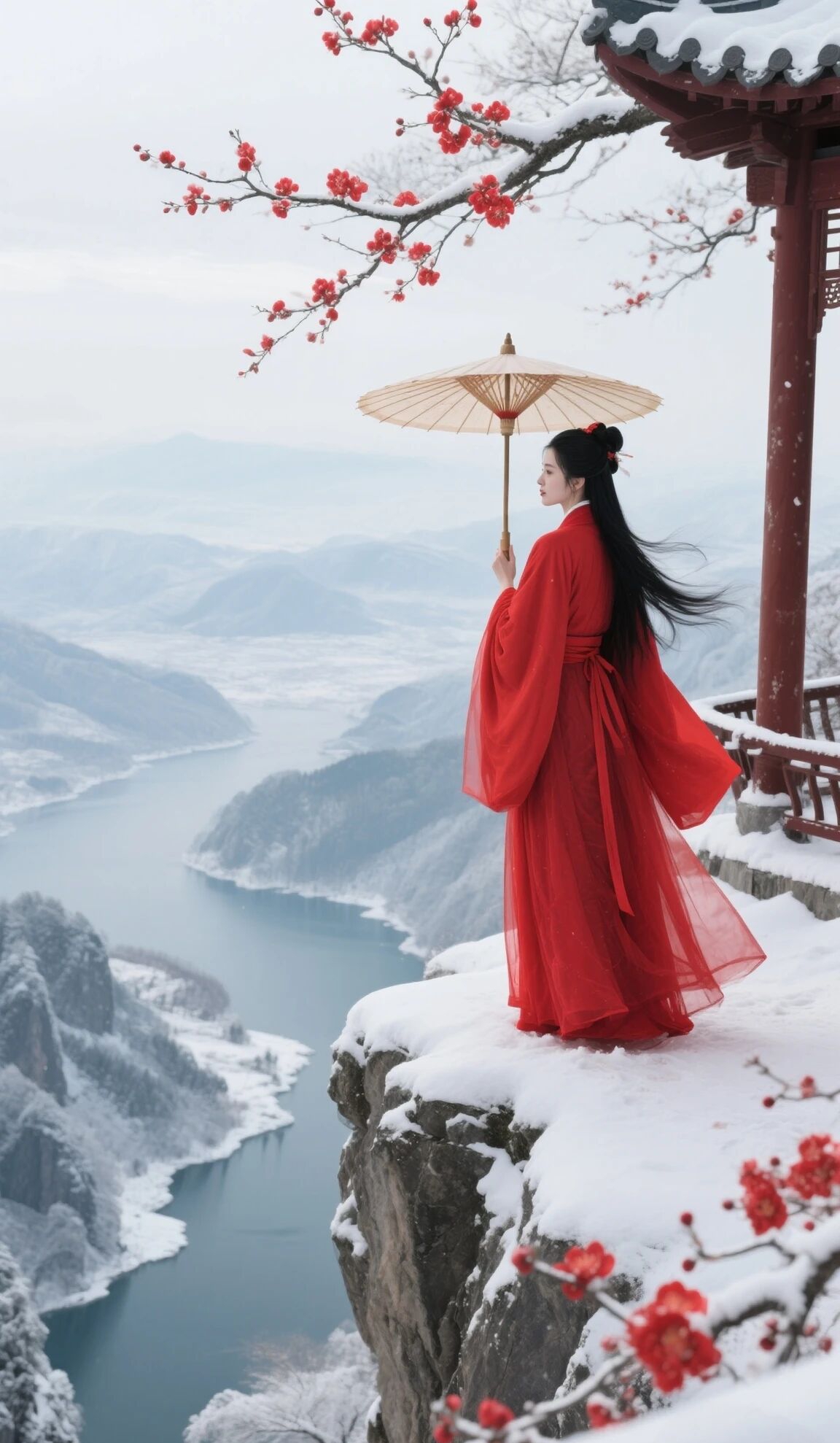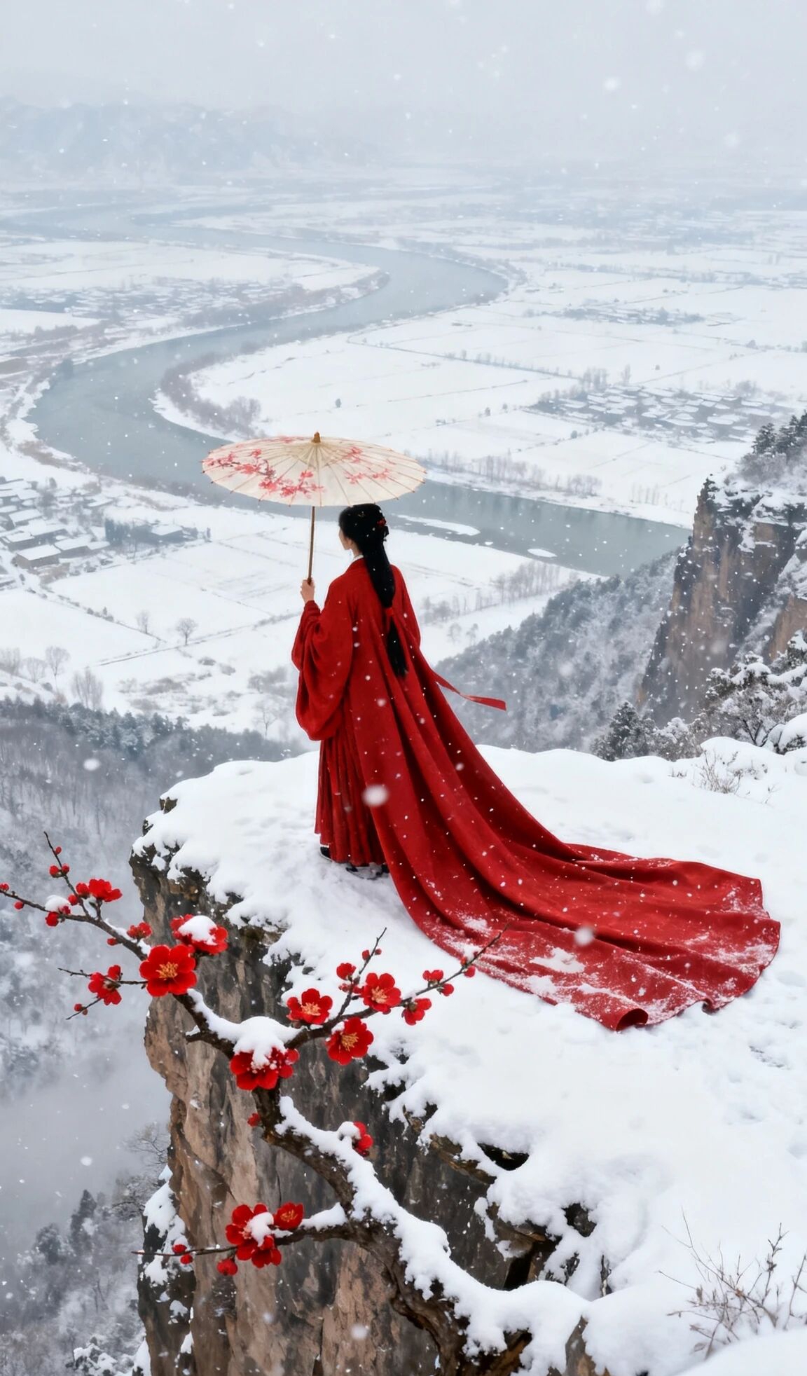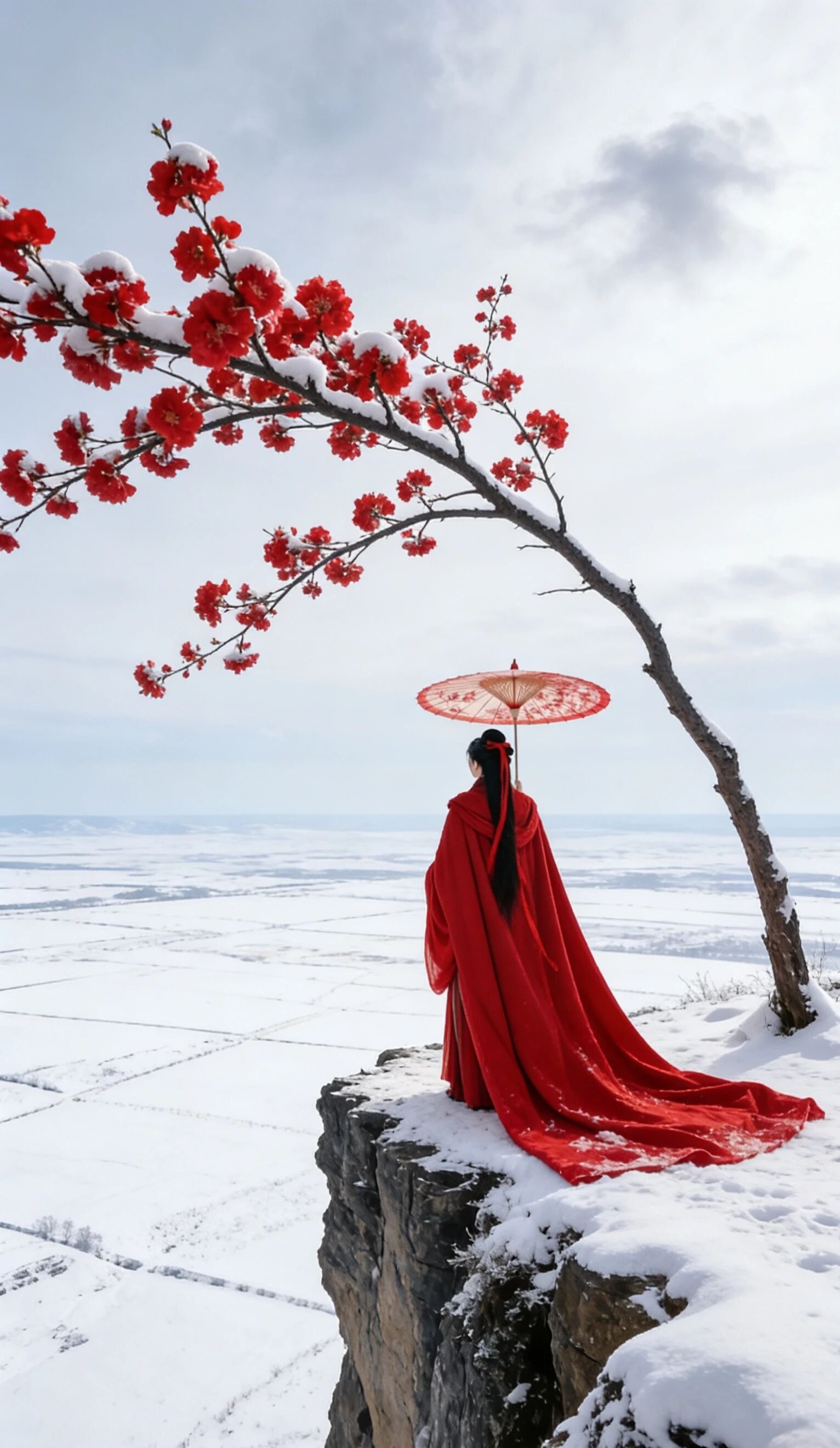 七绝 红梅报春雪尽寒山风渐柔,胭脂万点占枝头。暗香已报春消息,先遣红妆下玉楼。