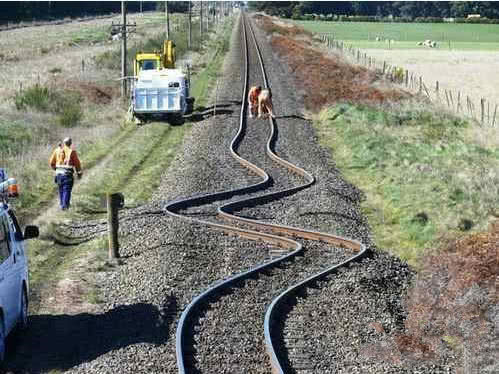 这张照片在新西兰拍摄到的,也不是PS成的,而是新西兰一场地动破坏了铁轨。