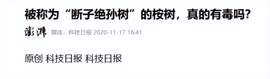 至于桉树身上最离谱的说法,就要数“断子绝孙树”一事了,这背后更是一个大误会。