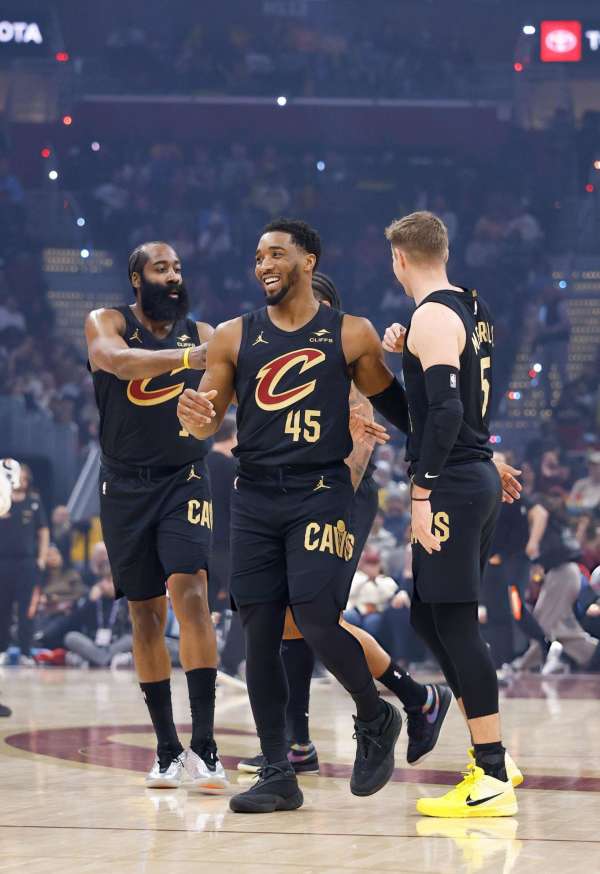 骑士队-梅里尔32分,米切尔30分5篮板;哈登13分4篮板11助攻,阿伦21分9篮板,泰森7分5篮板,施罗德7分3篮板,汤姆林8分5篮板。