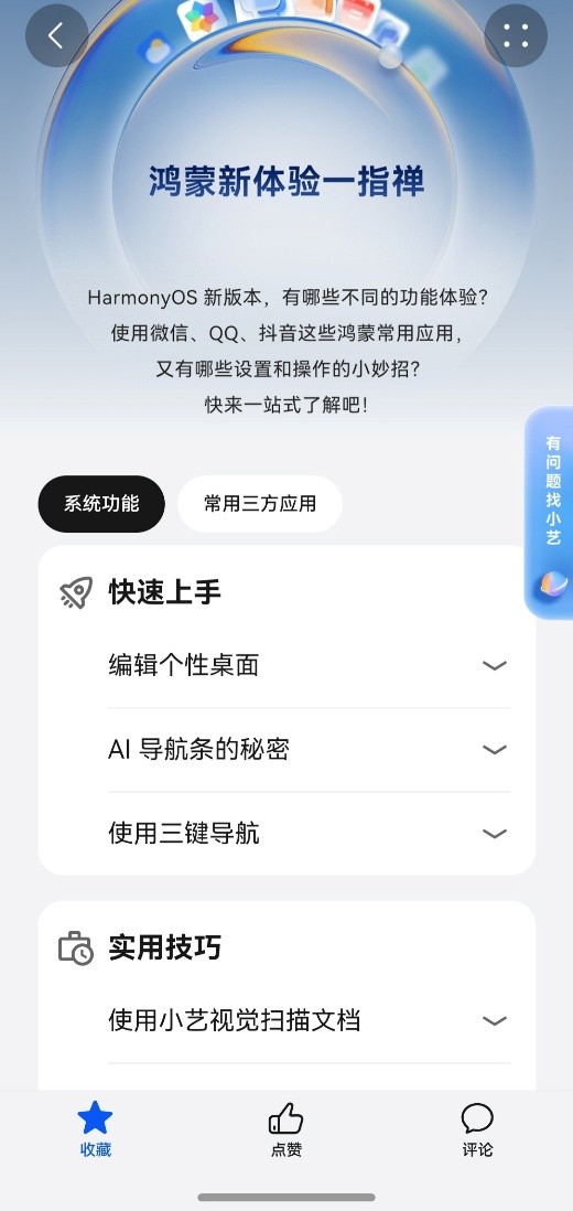 大家还可以逛逛「玩机助手」下面的「鸿蒙一指禅」。这里把系统功能 + 常用三方应用的高频问题都整理好了。像是:系统里某些快捷操作怎么开、鸿蒙版应用常见设置在哪、一些大家经常用、但不一定会用的隐藏用法,点进去看一眼,基本都能照着学。