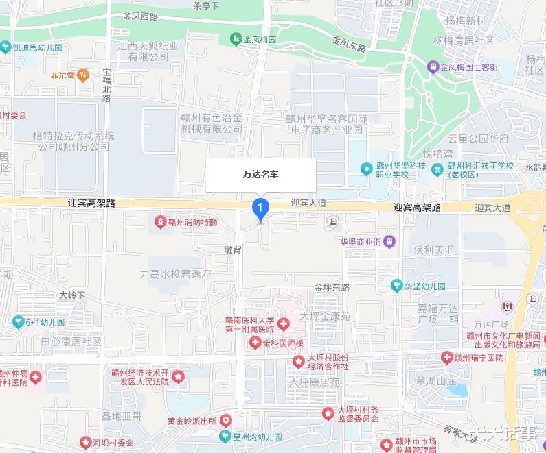 此次拍卖的房地产,地段在赣州市非常不错,位于迎宾大道和金潭大道交汇处的东南角,处在两条主干道十字路口。目前,这个片区,沿着金潭大道两侧,也是赣州市主要的汽车销售门店聚集区,聚集了不少汽车4S店等,什么吉利、丰田、本田、宝马等。然后迎宾大道北部就是工业区。