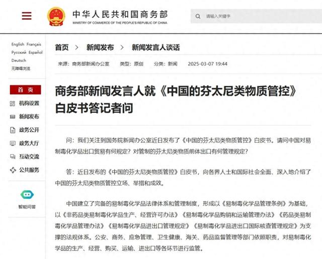 答:近日发布的《中国的芬太尼类物质管控》白皮书,向各界人士和国际社会全面、深入地介绍了中国的芬太尼类物质管控立场、举措和成效。