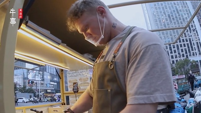 看到这么“别致”的老外,不少往来的顾客都愿意为他的小吃摊买单,只为了跟他聊上几句。