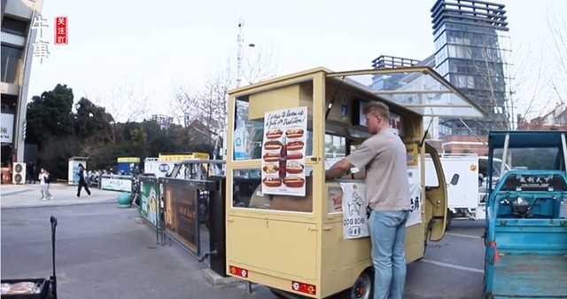 因为这张外国面孔,他卖的热狗就让人多了一分信任感,因此也就有不少顾客愿意买单。