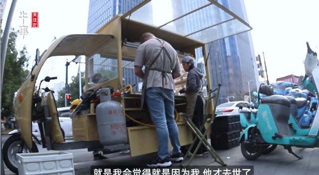 他的老婆也很明事理,在工作不忙的时候就会来到店里帮老公收拾东西,陪着丈夫一起去摆摊,给了他十足的安全感。