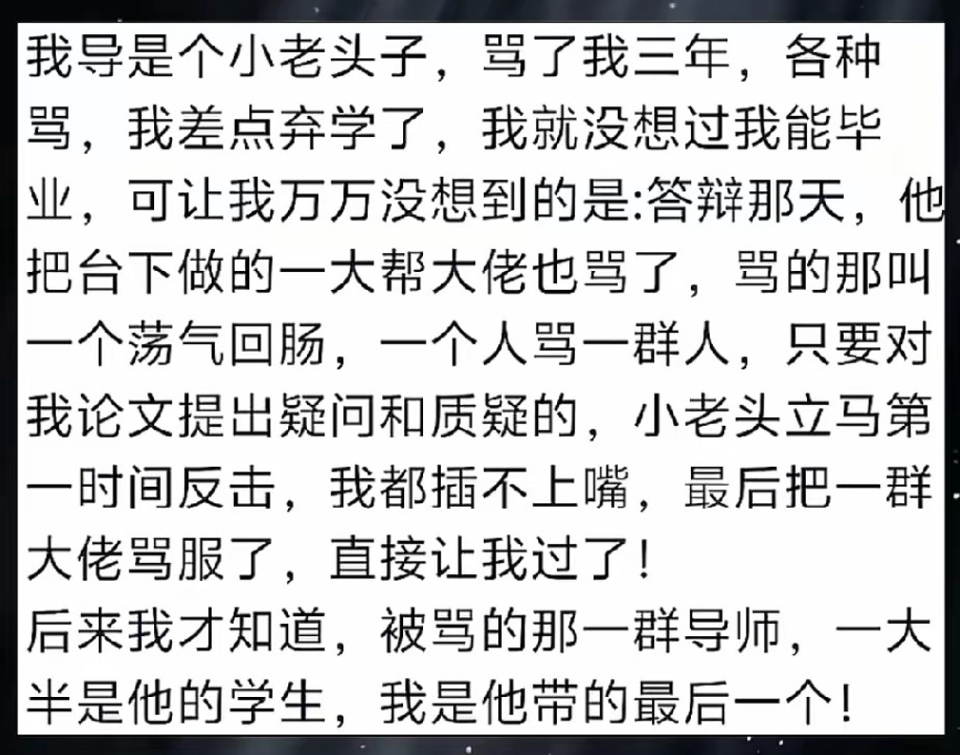 读研时要是没被导师训哭过,那大概率是遇上了“放羊式”老板;但要是被训了3年,答辩当天还能看着他为了你力辩一群专家,这剧情连爽文都不敢这么写。