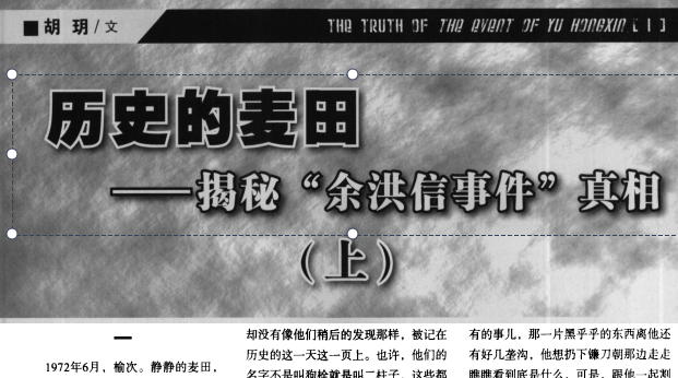 《军事档案》:《历史的麦田——揭秘“余洪信事件”真相》