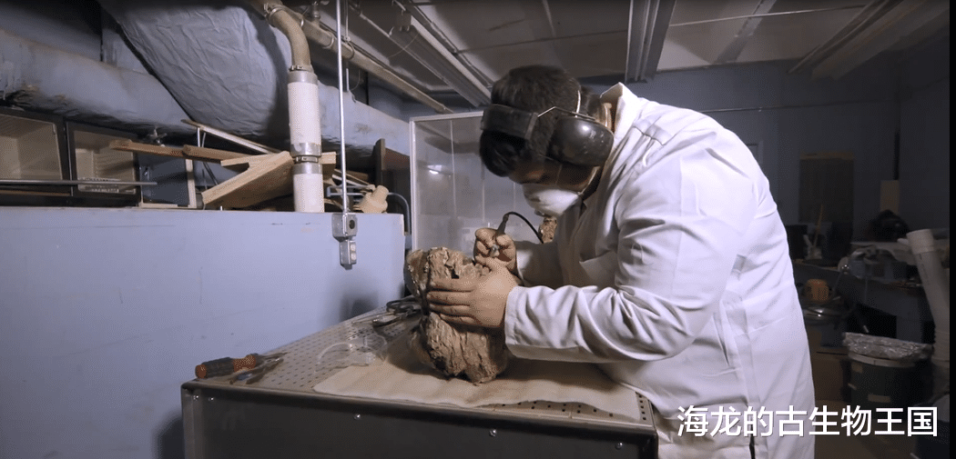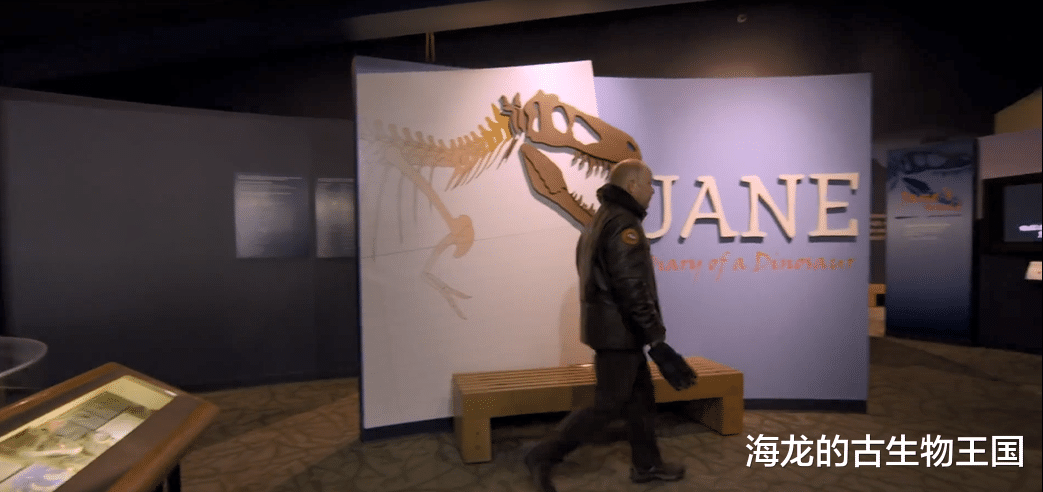 我们希望找到更多的样本,如今在伯彼博物馆还有一个样本,非常符合这类恐龙的特征,它们给它取名为简,它是一只有意思的小型掠食者,正在伊利诺伊州的一家博物馆展览,它是五年前被发掘出来的,发掘地点就在蒙大拿。与那块展现殊死战场景的化石在同一个地方。简被认为是现存唯一完整的未成年霸王龙化石样本,但真的是这样吗?和殊死战化石一样,它的体型只有成年霸王龙的一半大小,简之所以特殊,原因之一就是它是这类争论的焦点,或者说有一段时间,它是争论的焦点,争论的内容是关于矮暴龙的这个品种是否存在,争论的焦点就集中在1942年由克利夫兰自然历史博物馆收藏的一个头部化石上,之后在2001年我们就发现了简。2002年将它挖掘出来,不仅挖出来几乎完整的头部,还有一大半的躯干部分所以它成为了古生物学界争论的新焦点。