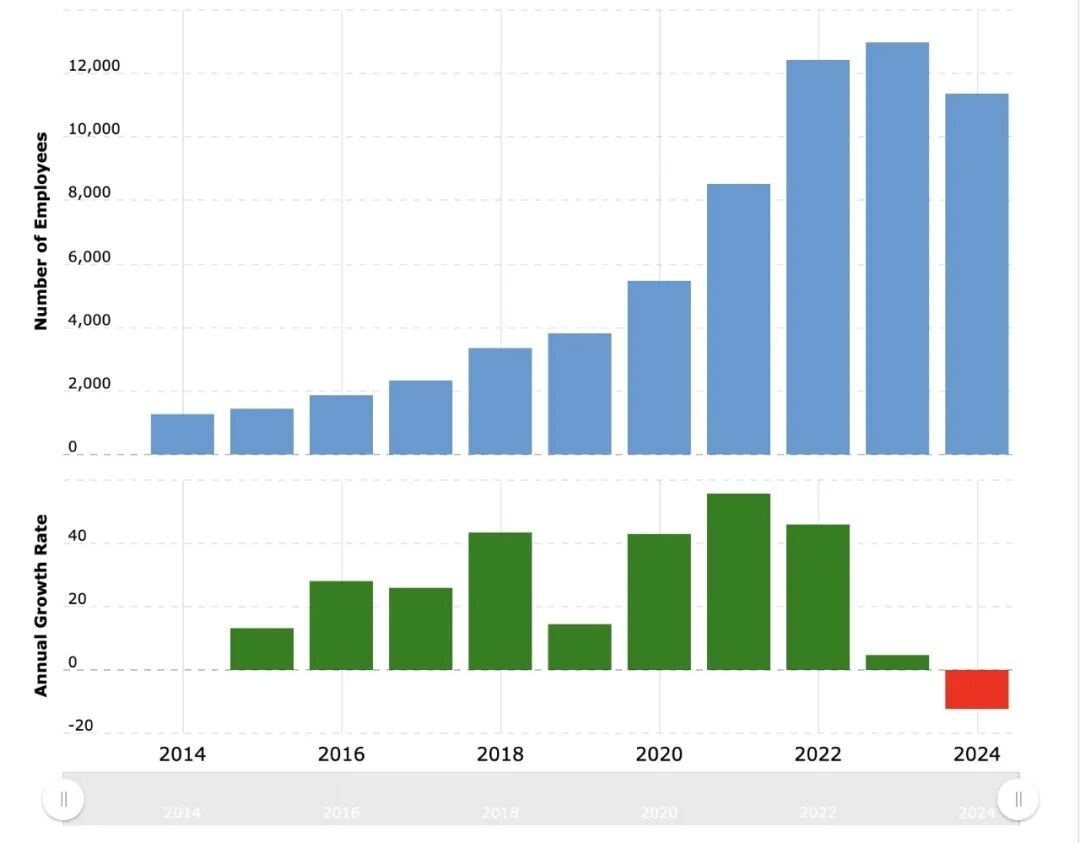于是,从 2024 年开始,Block已经开始削减人数,从 1.2 万人的高位,降至 1 万人左右;最终在 2 月的大裁员里,让雇员人数重新回到 6000 人左右。