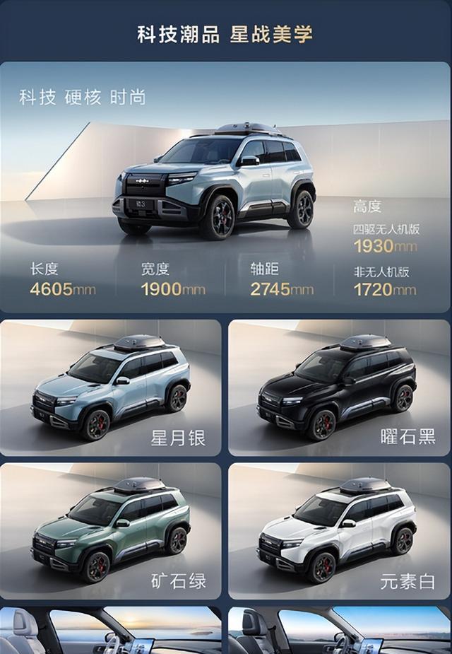 说到外观,方程豹钛3给人的第一印象就是极具个性的“星战前脸”,这并不是一种单纯的装饰设计,而是一个将科技感与视觉冲击结合的大胆尝试。封闭式的熏黑中网和梯形的灯组设计让整款车显得动感十足,尤其是内部极具未来感的LED光源,更是让夜间行驶的钛3显得格外耀眼。车身的侧面造型小巧而灵动,熏黑五辐轮圈搭配红色刹车卡钳,无疑彰显了运动气息,年轻消费者在选择一款车型时,显然更倾向于这种能够展示自我个性和活力的外观设计。除此之外,方程豹与大疆联合研发的智能车载无人机系统,更是为户外探险赋予了全新的可能性。在城市和自然之间流畅转换的能力,正是现代年轻人生活方式的缩影。