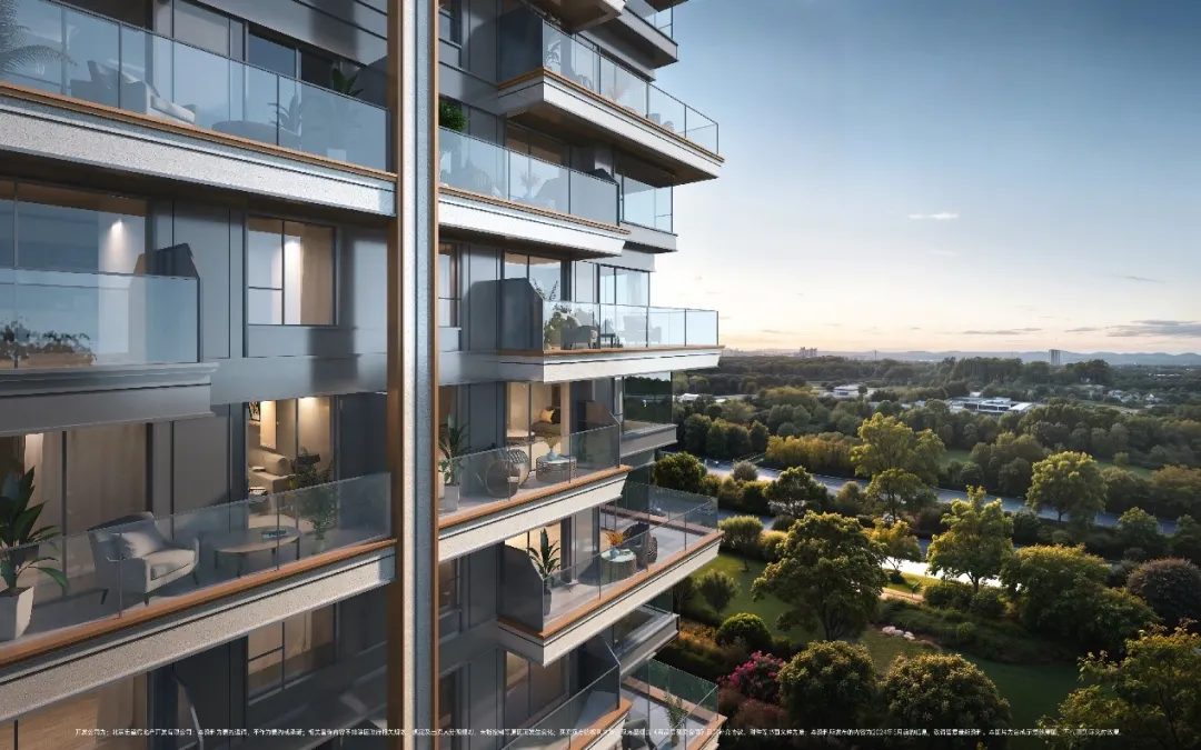项目采用奇偶式阳台的设计,即各户的阳台是错落设置,楼上楼下形成了6米的挑高,不仅如此,部分户型的阳台赠送空间高达20平米,拥有近14米超长观景面。通过错层营造的悬浮空间将阳台变成了一个“空中庭院”,为生活场景提供了更多的可能性。