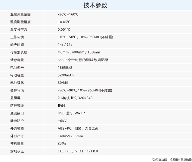 测量范围覆盖-50℃~160℃,测量精度达±0.05℃,分辨力高达0.001℃,能精准捕捉微小温度变化。