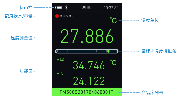 操作界面简洁易用,集成蜂鸣提示、上下限设置等十余项辅助功能,可个性化适配不同测量需求,测量界面能直观呈现状态栏、温度值、记录状态等关键信息;支持实时存储多组带时标数据(储存容量65535个带时标的测试数据记录),还能通过电脑、手机远程监控,自动生成PDF报告,简化工作流程;内置采用大容量可充电锂电池,续航能力可达60小时(理想状态下),可满足长时间作业需求。