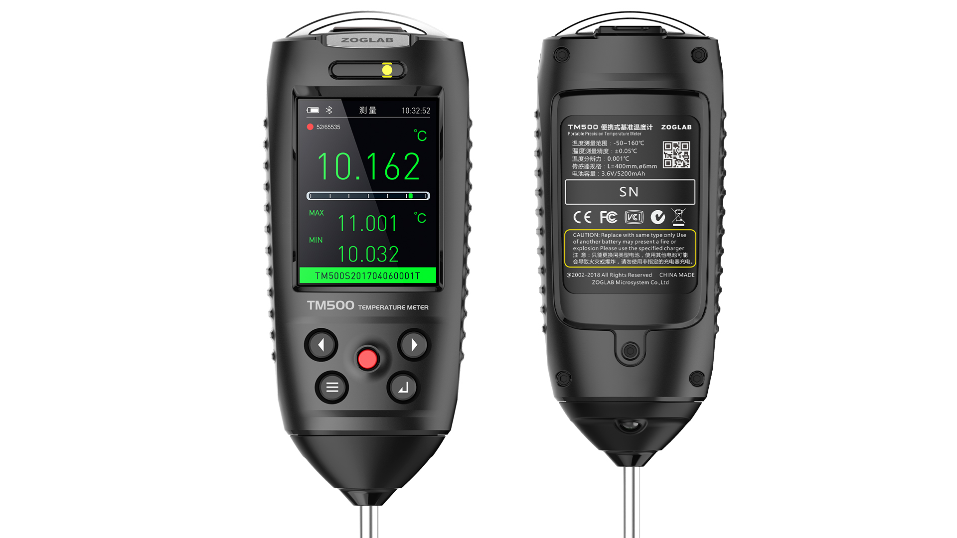 佐格TM500是一款高精度的便携式基准温度计,主要由温度传感器、显示屏、控制单元构成,整体采用了防水结构设计,支持全自动横屏切换,方便读数。可应用于实验室温度校准,也可在工业现场方便可靠地实现高准确度的温度测量。
