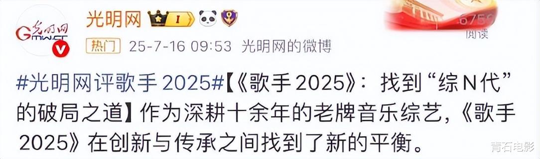 《光明日报》发布文章,直言《歌手2025》找到“综N代”的破局之道,让节目焕发持久生命力。