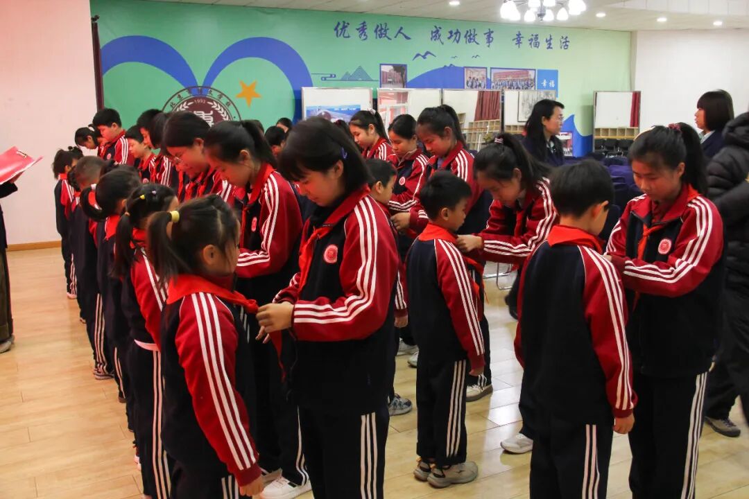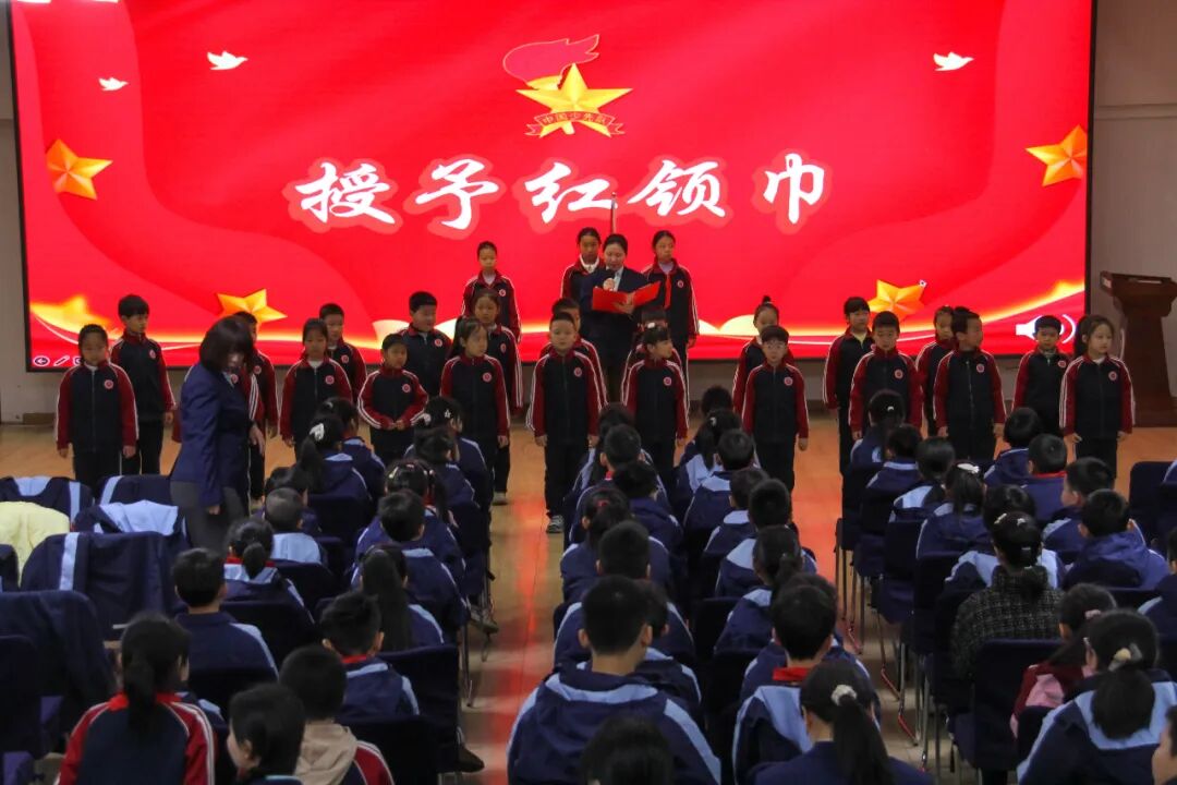 鲜艳的红领巾映着稚嫩的脸庞,新队员们在队旗下庄严宣誓,一句句誓言铿锵有力,宣告着成为少先队员的荣耀与责任。