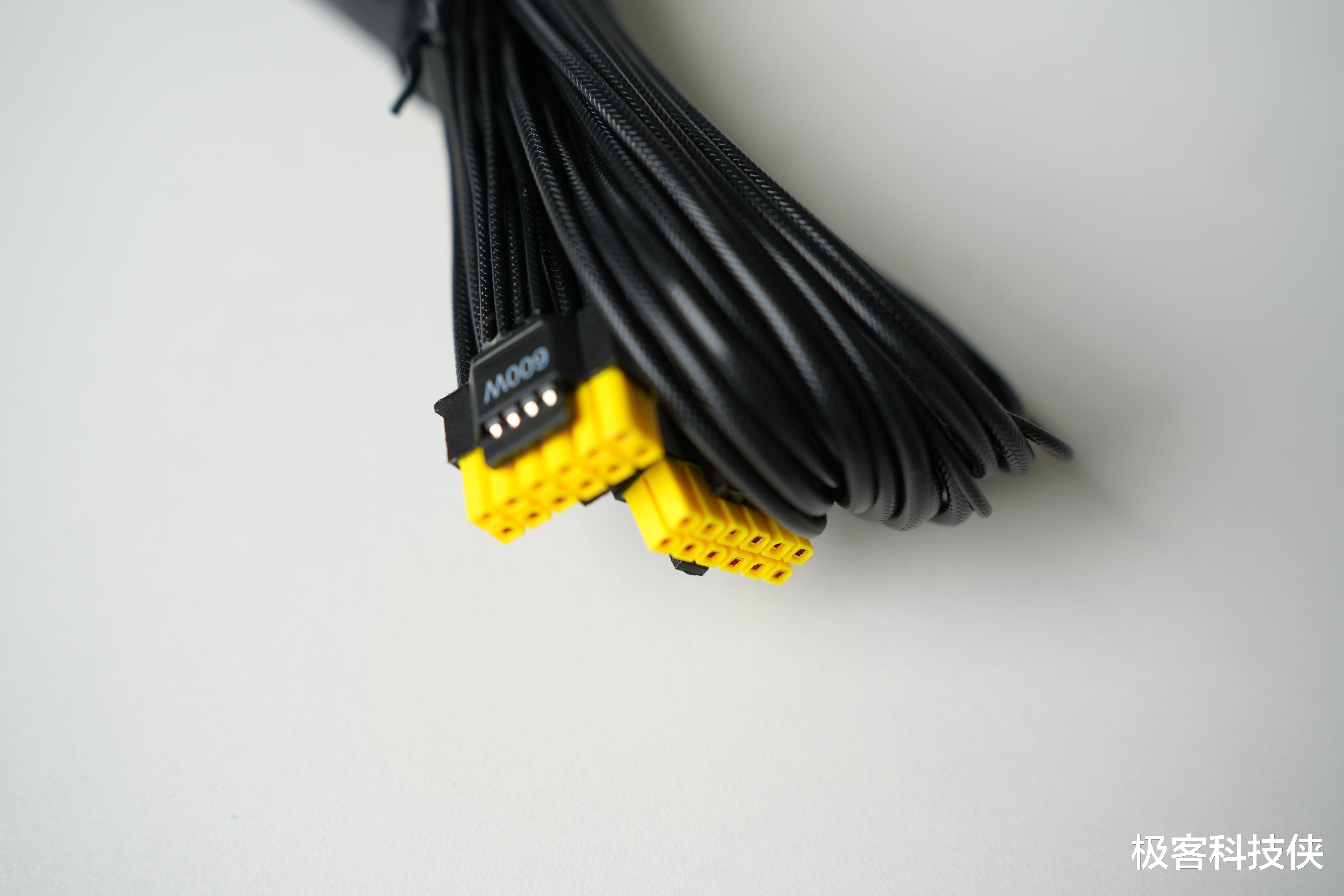 PCIe 5.1规范在电源产品中与ATX 3.1规范一同被遵循。该规范主要涉及显卡供电,要求采用原生PCIe 12V-2x6接口,可负荷最高300%的瞬时峰值功耗,其16-pin PCIe供电线最大输出可达600W。